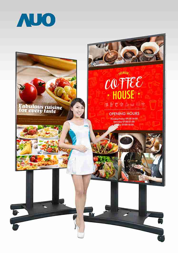 本次领先业界(*) 推出 85寸 UHD 4K 户外型超大显示器,,,,具备 2500 nits 超高亮度和连续开机操作的稳定性能,,,在阳光直射环境下影像仍然鲜明清晰,,,适合户外候车亭及高级精品店等广告播放使用。。。55寸 Full HD 拼接墙显示器的极窄边框技术,,,,让相邻屏幕拼接后的边框宽度仅 1.8mm,,,,能因应各种空间灵活设计为不规则拼接墙,,,,搭配色彩及亮度调校技术呈现完美的画面均匀度,,,,打造独一无二的品牌形象广告。。。本次也将展出一系列的超宽型公共讯息显示器,,,尺寸从 28.6寸至 42寸,,,,皆具备高解析、、、高亮度、、高信赖性等特色,,,,可配置于半户外环境,,,作为交通信息显示器提供旅客实时候车信息及广告讯息、、、、于零售商店展示超宽型广告,,,,或打造成智能商店货架以互动感应设计呈现商品讯息,,增加消费者购物乐趣。。。