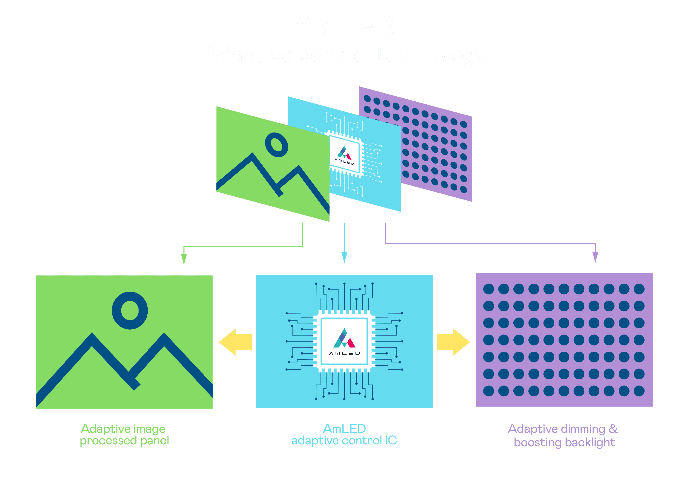 AmLED 具备更省电与低蓝光特性。。与一般的 LED 背光显示技术相比,,由于 AmLED 常时处于局部调光状态,,,,其功耗仅有前者的 50% 左右,,,同时 AmLED 还具备低蓝光特性,,满足长时间使用的护眼需求。。。。