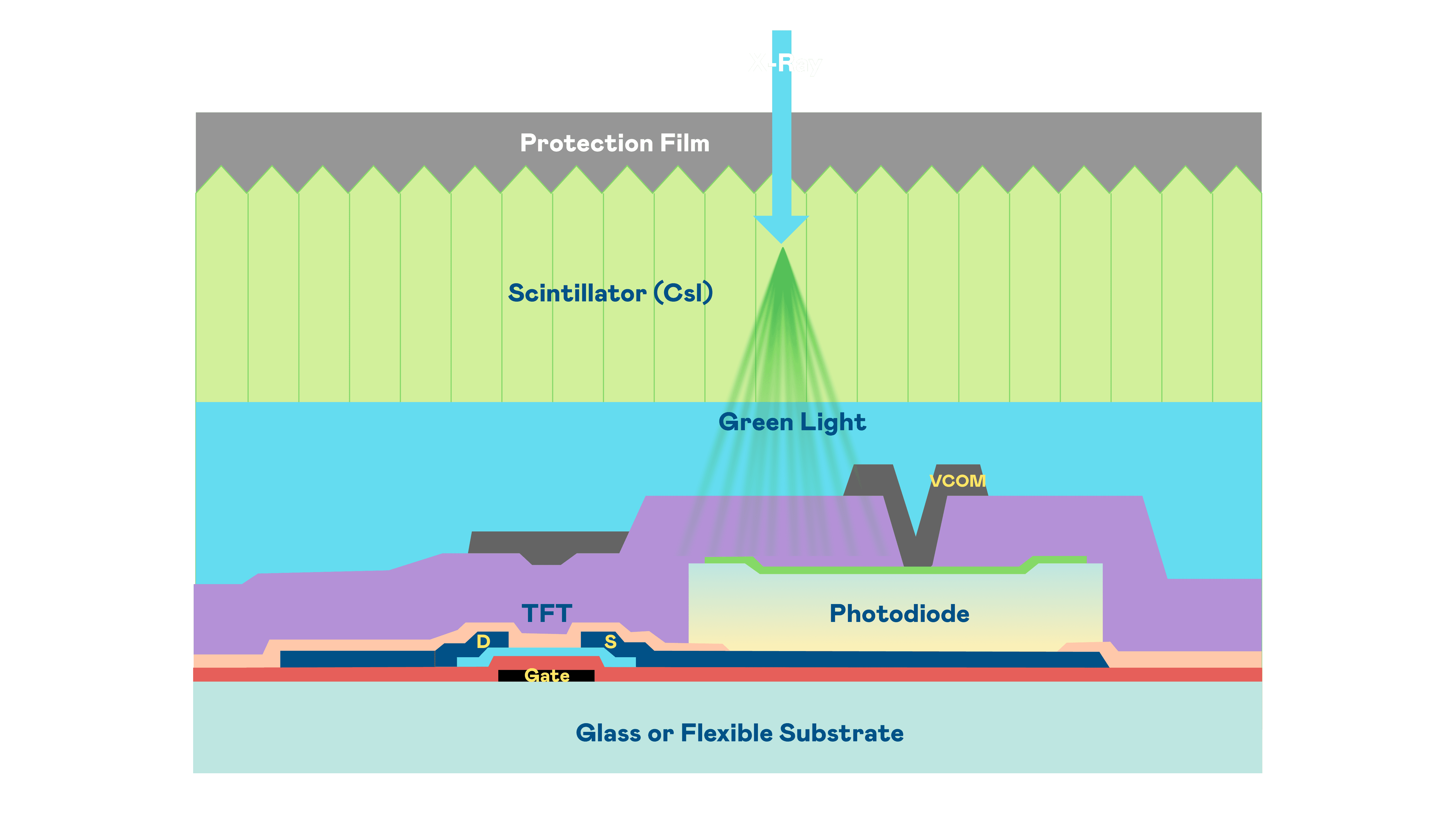 888.BY集团电子游戏的X光影像感测阵列使用薄膜电晶体 (TFT) 作为每个像素的读取开关,,,搭配光电二极体(Photodiode)的光电转换元件,,,用以感测X光影像讯号。。。