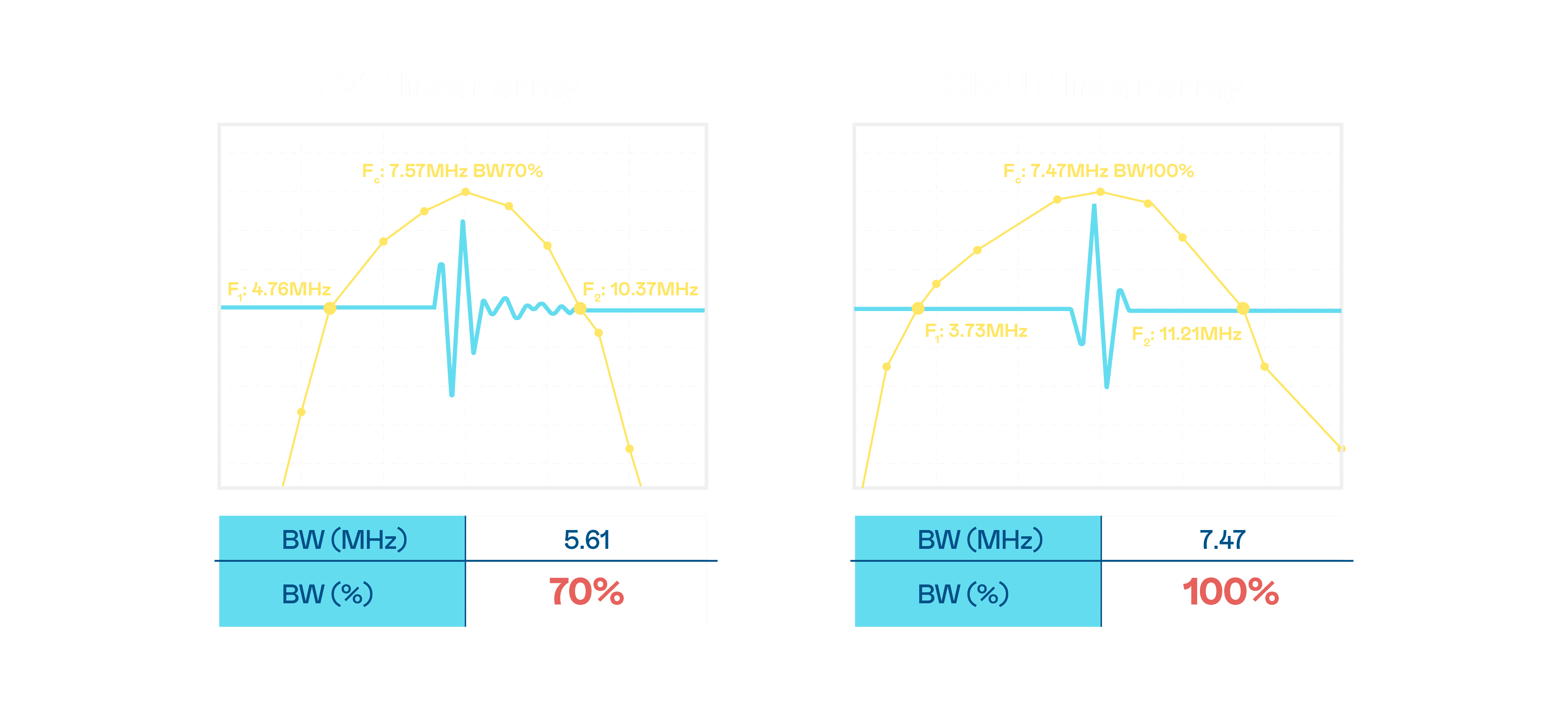超音波影像的解析度高低,,,首先取决于探头能发出的讯号频宽。。。。888.BY集团电子游戏 CMUT 可提供高清晰的超音波讯号,,,,提供高频宽、、、高灵敏度、、、影像纹理细节更高的超音波影像,,,,协助医护人员缩短影像判读时间及利用精准的医疗影像进行诊断。。。。